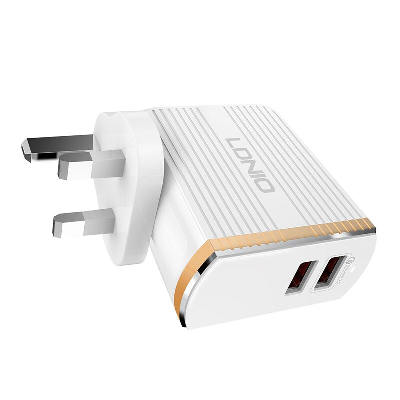 LDNIO Quick Charge QC3.0 Home Charger Adapter + Cable Micro Brand: LDNIO Model: A2502Q USB Port: 2 USB Input : AC 100-240V 50/60HZ Output: 3.6-6V=3A 6-9V=2A...