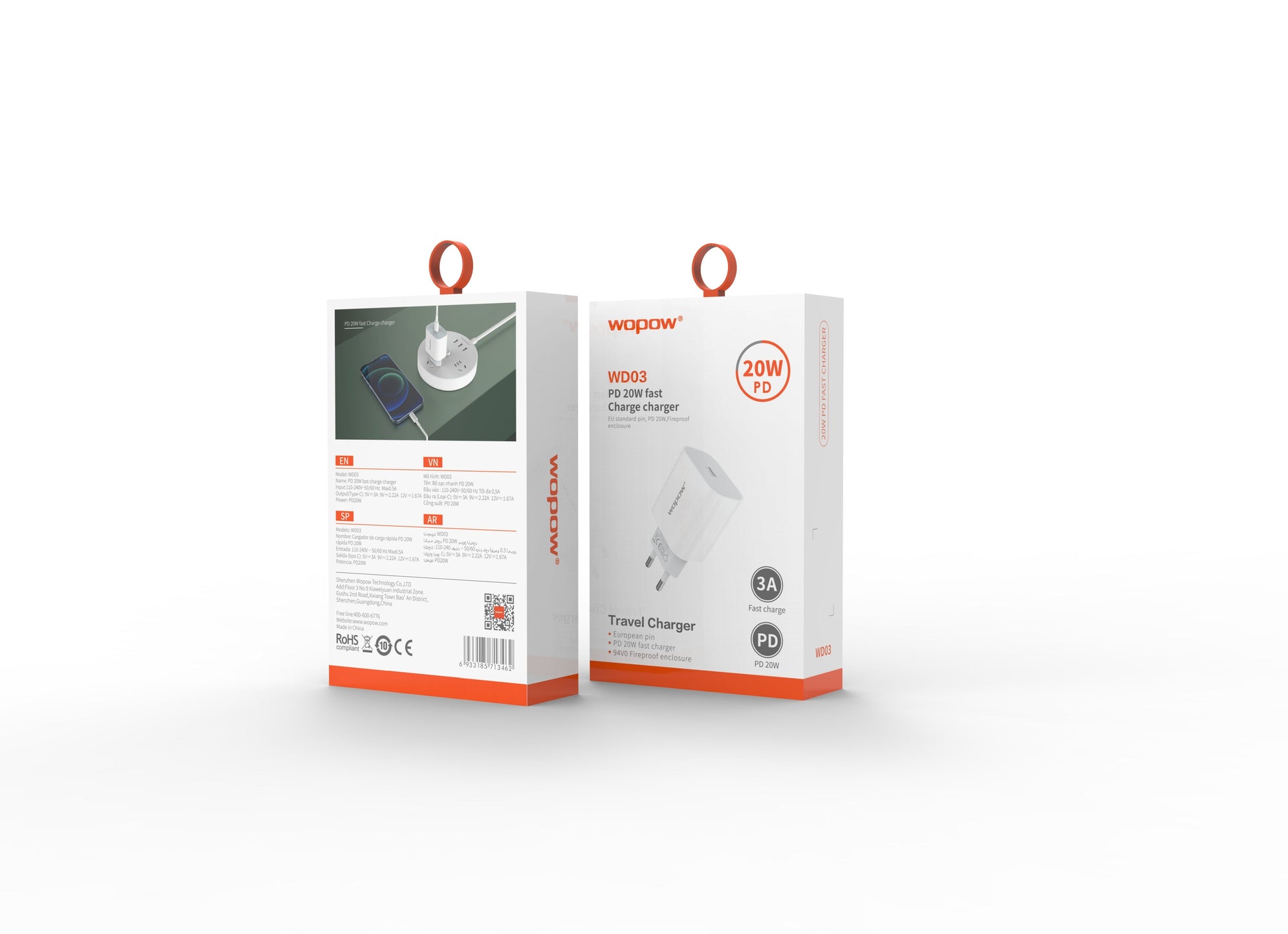 WOPOW WD03 Wholesale EU pin portable smart cell mobile travel pd wall fast charger 20w